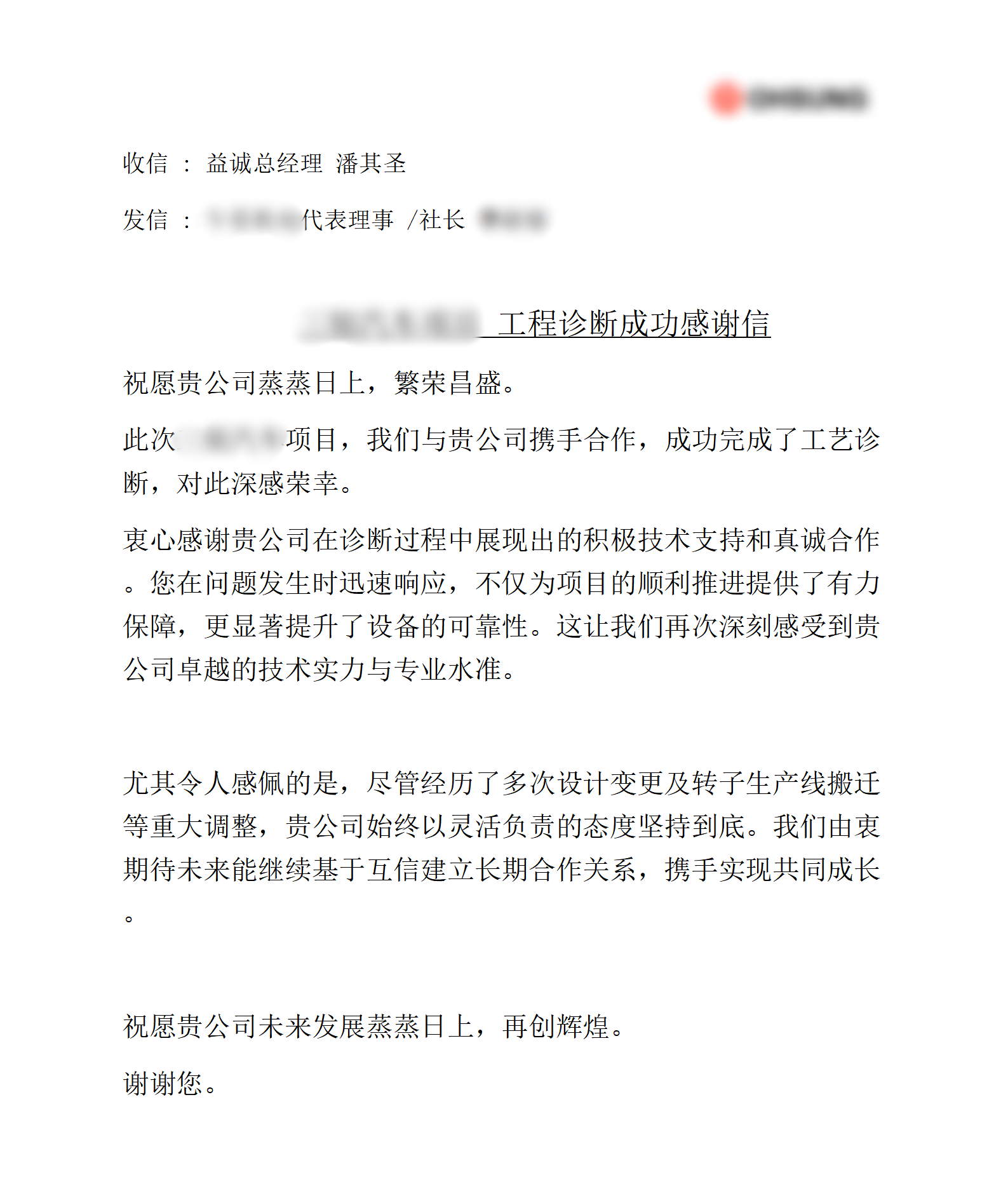 項(xiàng)目捷報(bào) | 益誠(chéng)自動(dòng)化國(guó)際項(xiàng)目喜獲客戶感謝函!