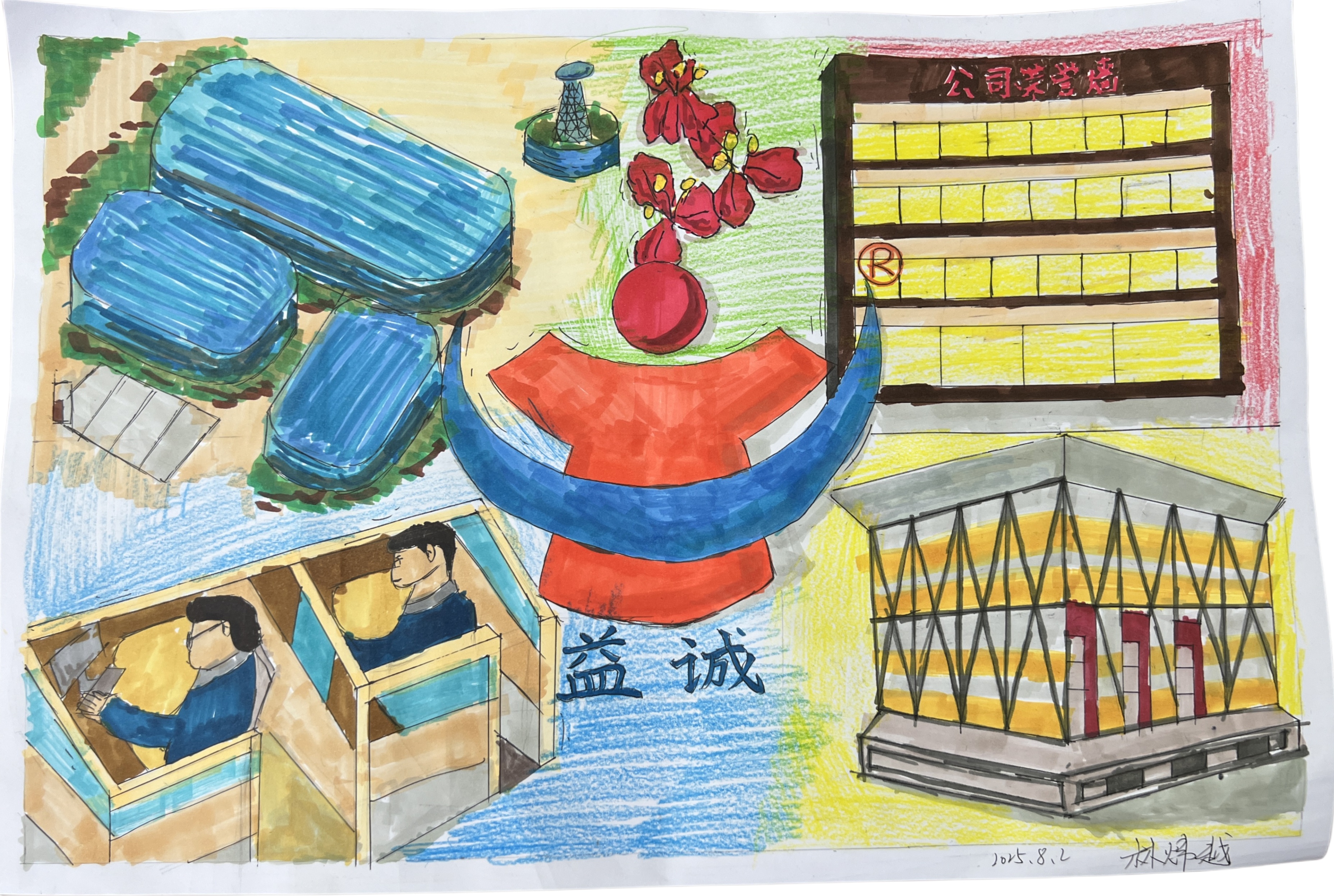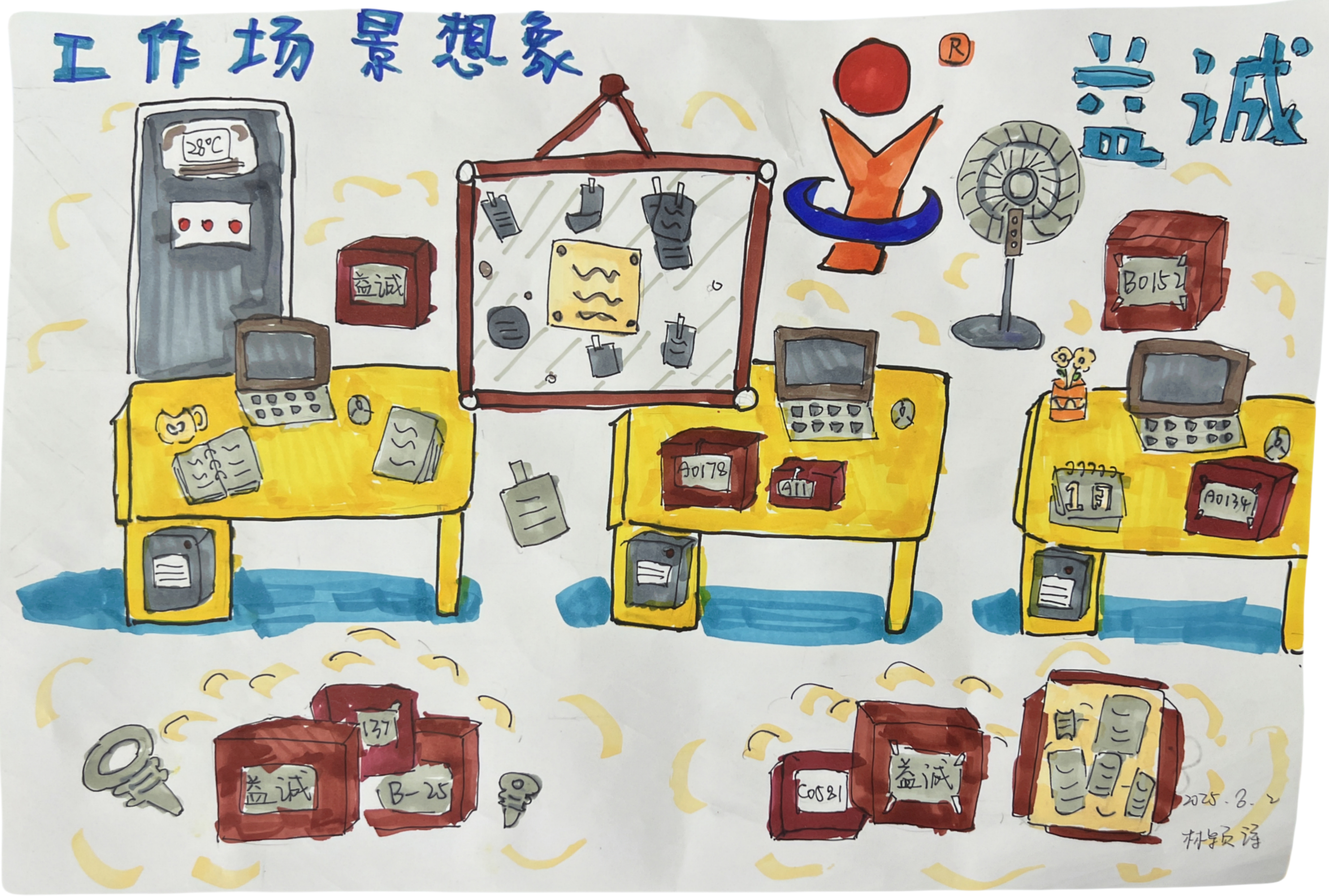 孩子們結(jié)合自己的奇思妙想,對益誠LOGO進行了大膽的創(chuàng)意設(shè)計,將益誠LOGO設(shè)計成了充滿未來感的科技圖案,原本簡潔的標(biāo)志在孩子們的筆下變得生動有趣,仿佛被賦予了新的生命。