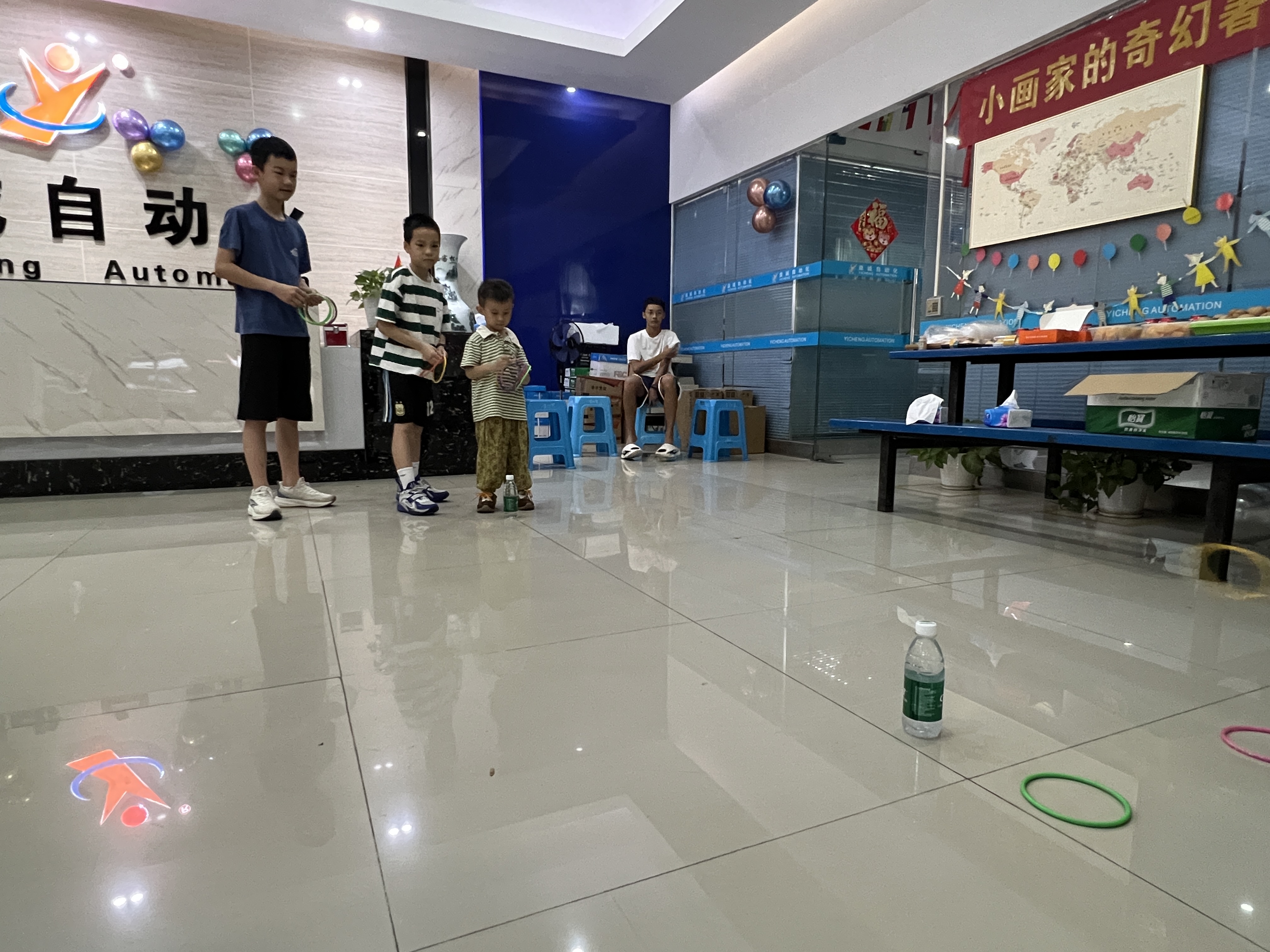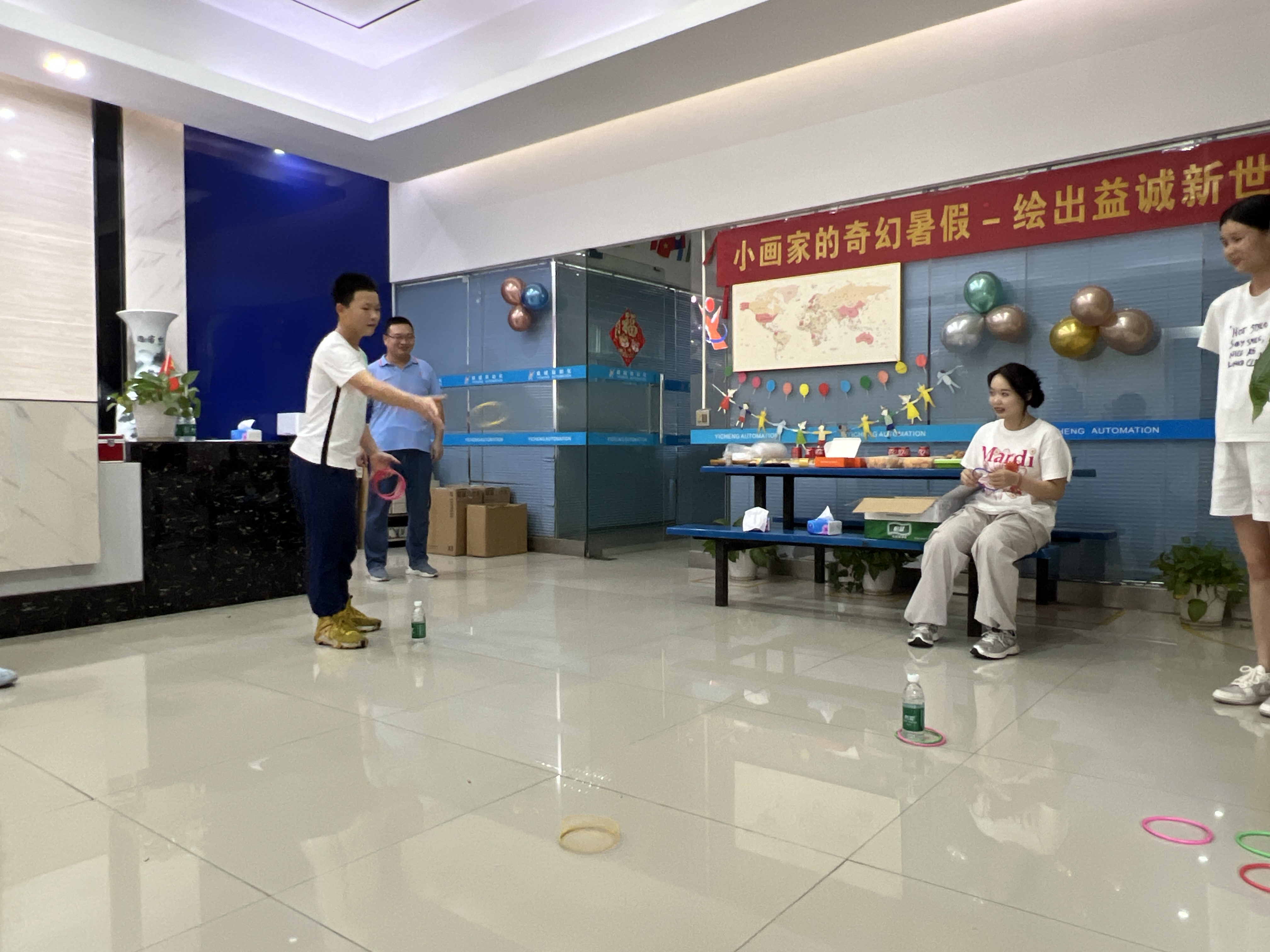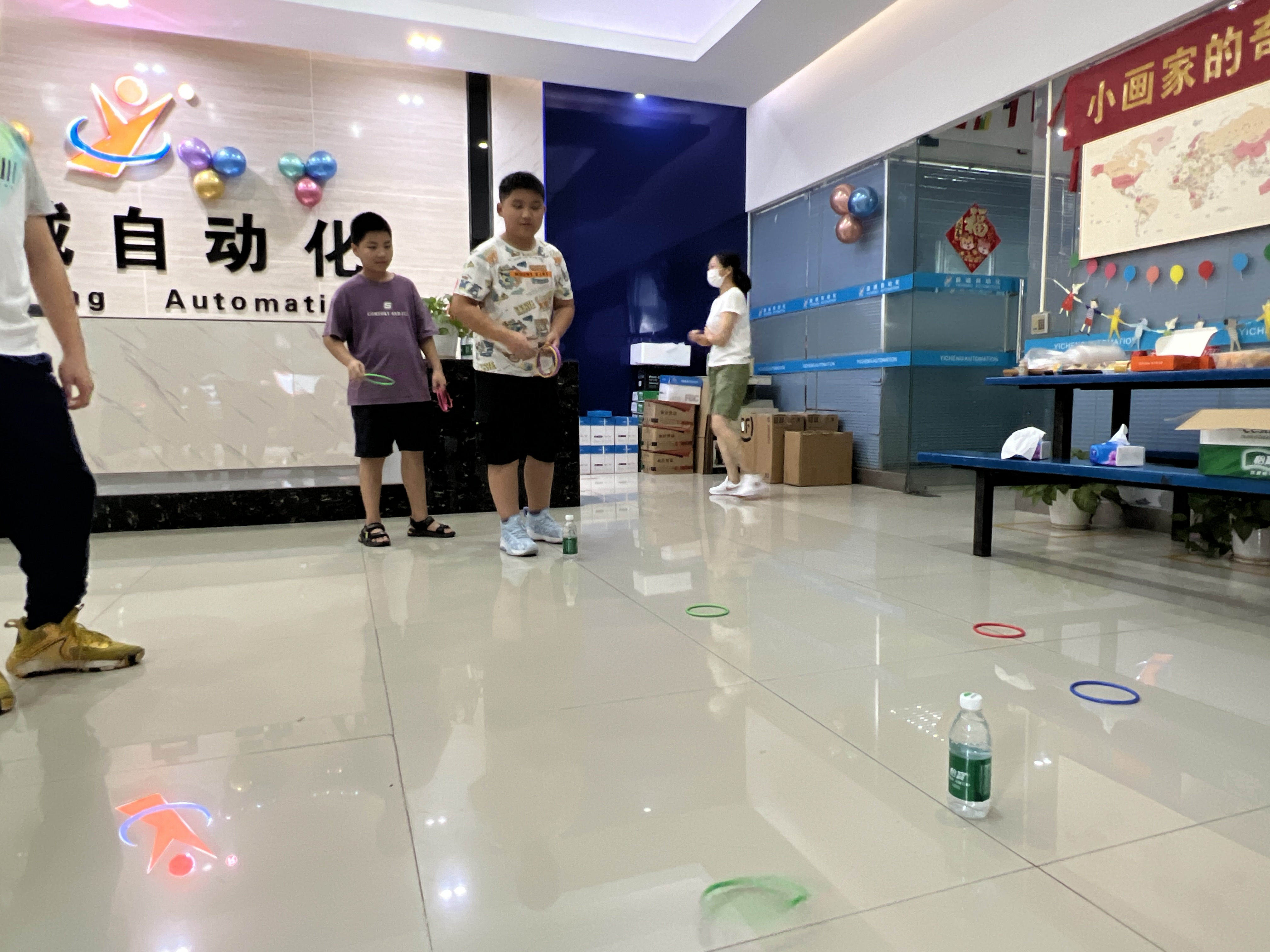 繪畫比賽之余,趣味套圈小游戲區(qū)域也是熱鬧非凡。一個個色彩鮮艷的小圈擺放在地上,孩子們排著整齊的隊伍,眼睛緊緊盯著目標(biāo),躍躍欲試。