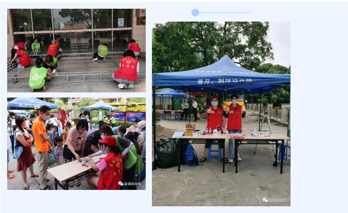 在活動現(xiàn)場,一個個身穿“益誠自動化志愿者”紅色馬甲的身影穿梭忙碌,搬桌子、布置展位、現(xiàn)場指引、游戲裁判、發(fā)獎品、與小朋友互動... ...益誠自動化志愿者們給活動主辦方、家長和小朋友們留下了深刻印象。